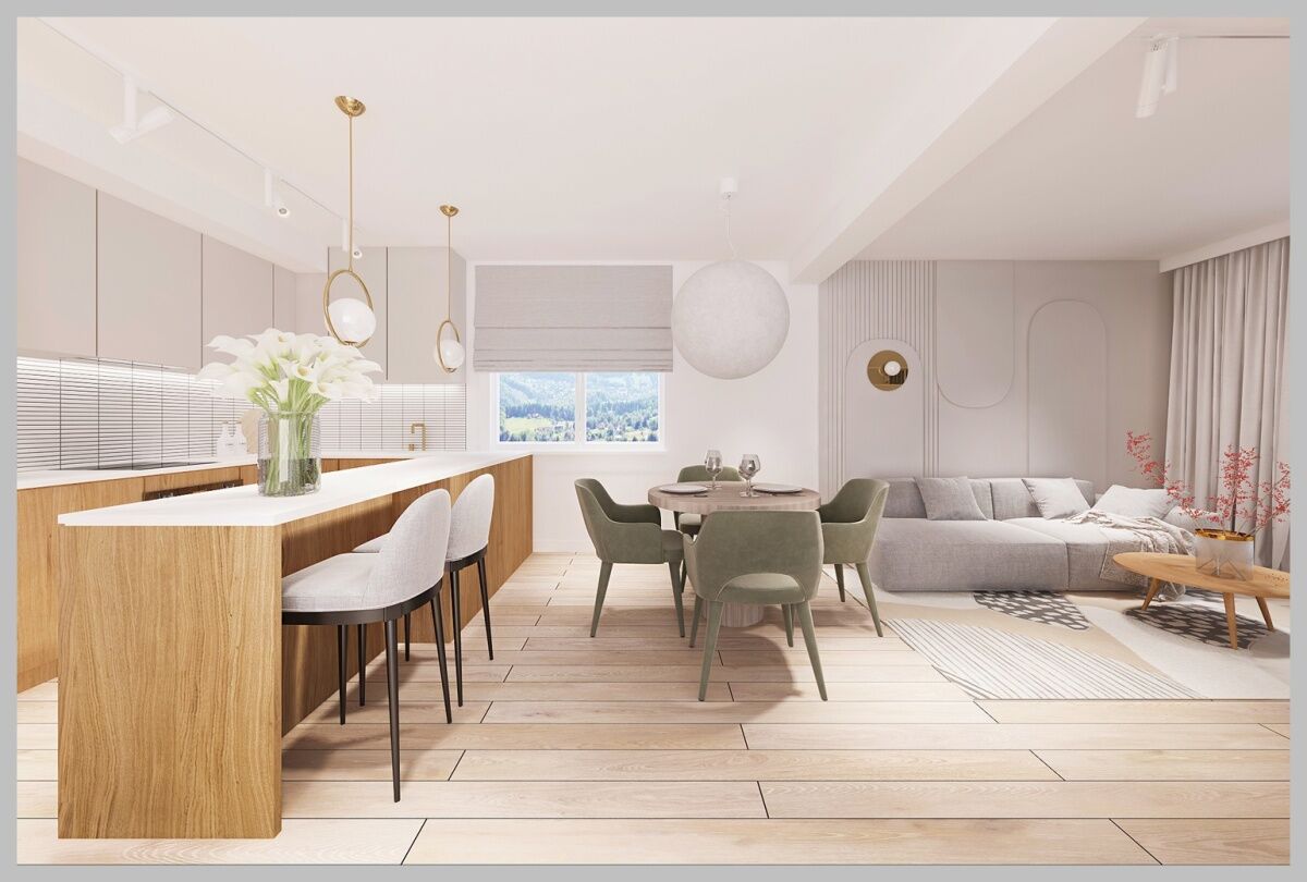 Nowe mieszkanie dwupoziomowe z widokiem na góry.