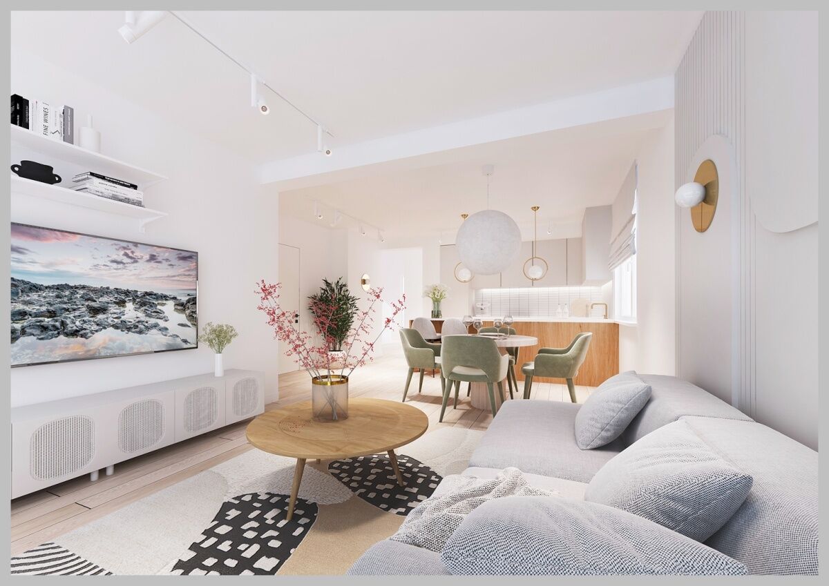Pokój dzienny z aneksem kuchennym oraz wyjściem na balkon, dwie sypialnie ( w tym jedna z wyjściem na balkon, łazienka z WC, przedpokój.